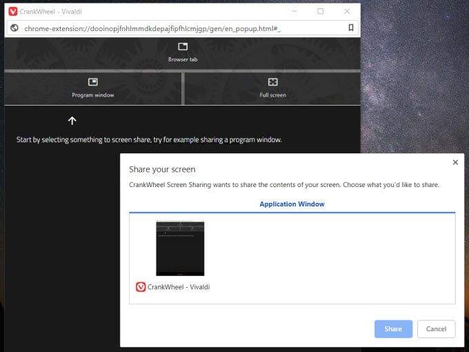 CrankWheel is another Chrome add-on that lets you remotely share your display. One thing that sets CrankWheel apart is that it’s extremely lightweight. Setup takes seconds.