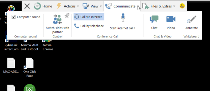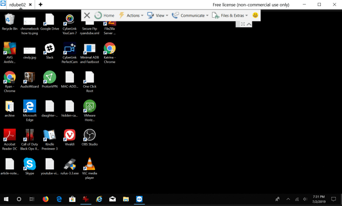 You’ll notice a control panel at the top of the window that you can use for various functions that’ll help you use the remote computer as well as communicate with the remote user.