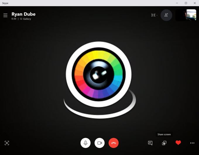 Once you’re in the videoconference, either attendee (more than two are possible), can select the Share Screen icon at the bottom of the screen to immediately share their desktop with everyone else in the meeting.
