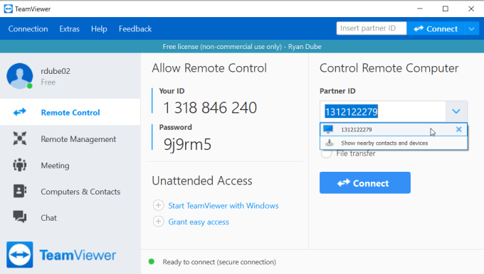 The easiest way to connect to another computer using TeamViewer is if you’re on the same network. If this is the case, just select the dropdown under Partner ID.