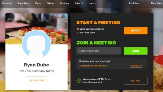When you sign up with Join.Me, you can create a web link to use for your screen sharing sessions. You can click Start under Start a Meeting to launch your session.