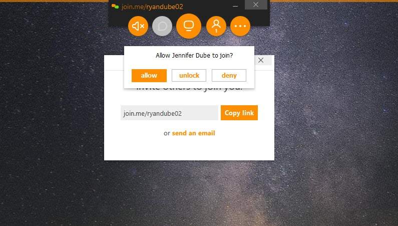 Just like Skype, the free version of Join.Me lets you share you screen and chat with other users in the session. This means the person who needs computer troubleshooting help needs to set up the session and invite users.