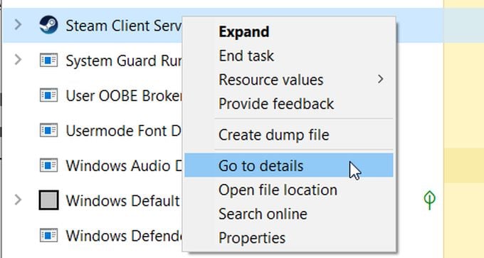Find the Steam Client Service and right-click on it, then select Go to details.