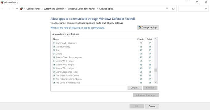 If you don’t see Steam in the list already, you can select Allow another app and search for it on your computer. Make sure you also allow your Steam games.