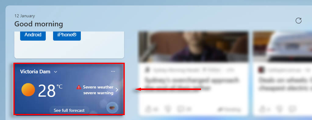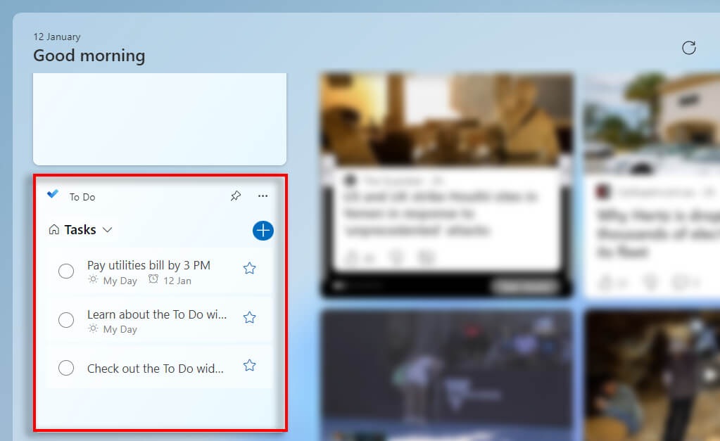 You can access your widgets by selecting the live weather icon in the bottom left-hand corner of your taskbar or by pressing the Windows key + W keyboard shortcut.