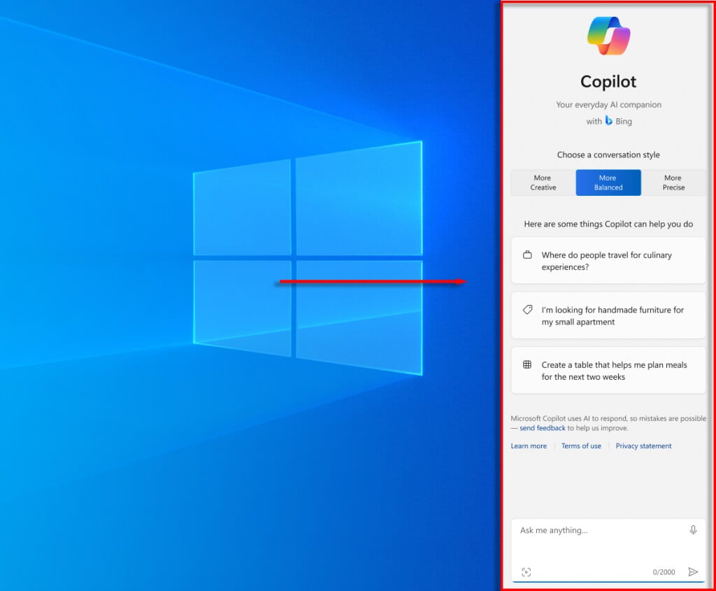 Copilot utilizes OpenAI’s ChatGPT to help you write emails, prepare document templates, and create images. To open Copilot, press the Windows key + C. You can then ask it to do whatever you want by typing a question or command into the text box at the bottom of the window.