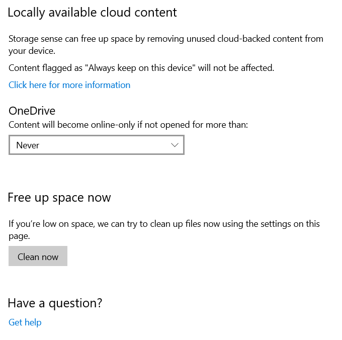 Look for the drop-down menu under OneDrive and choose how often you want to dehydrate files. Choose from:
