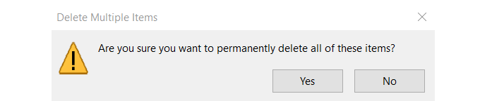 - When you click **Empty Recycle Bin, **a pop-up will ask: Are you sure you want to permanently delete all of these items?