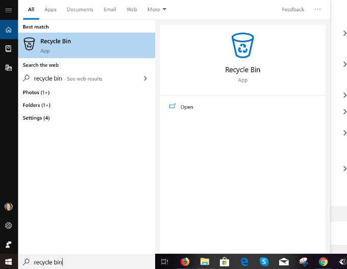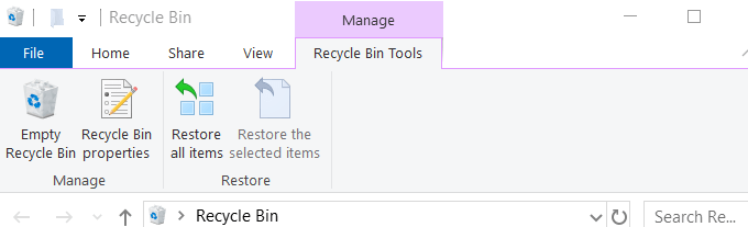 - If you find a file that was mistakenly deleted, click on it and choose **Restore. **The selected item will be removed from the Recycle Bin.