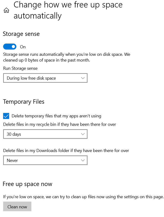 Click **Clean now **to enable Windows 10 to create more disk space on your hard drive by getting rid of clutter.