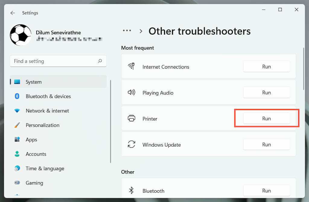 Windows has a built-in Printer troubleshooter that can fix most printer driver issues and other common printer problems. Run it before moving on to the rest of the fixes.