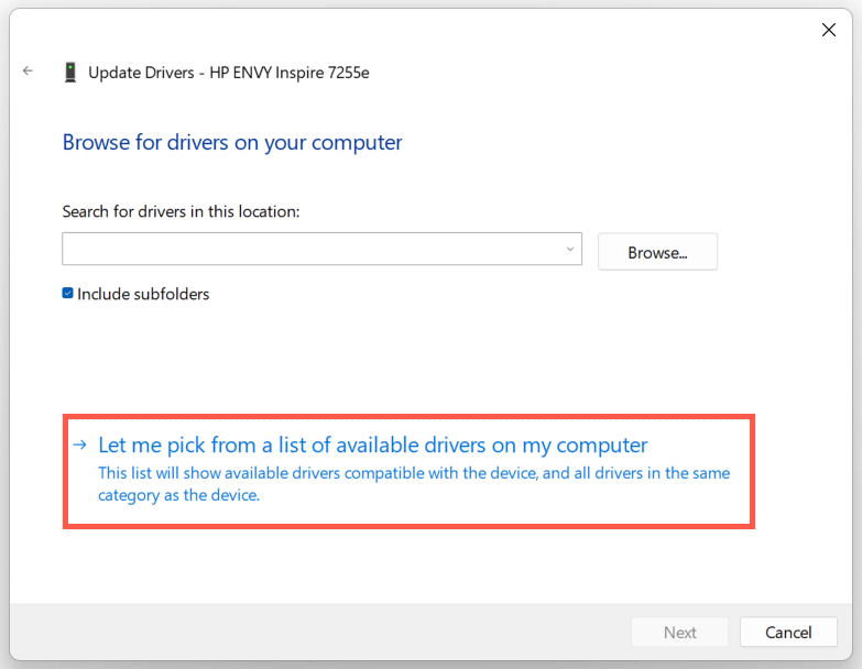 - Select Let me pick from the list of available drivers.