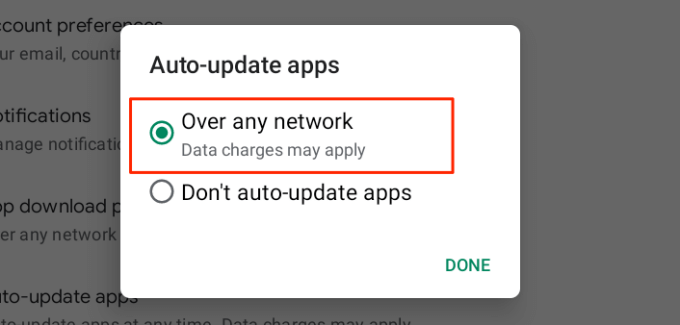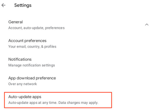 - Expand the General section and select **Auto-update apps**.