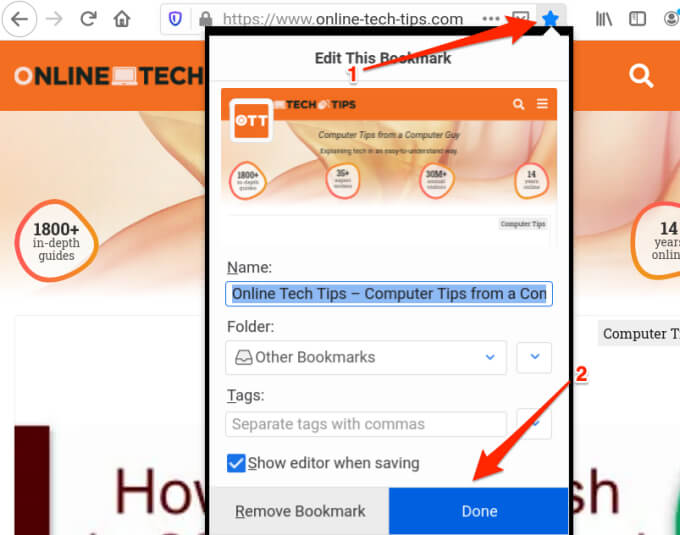 To bookmark a webpage on Chrome, click the star icon on the right edge of the browser’s address bar and select Done. That’ll add the page to your browser’s bookmark.
