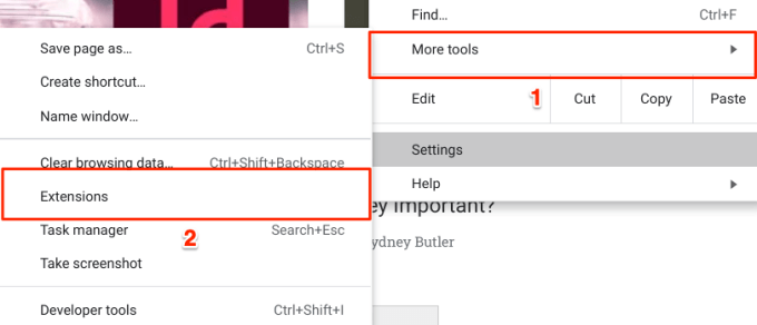 On Chrome, tap the menu icon, select More Tools, and choose Extensions.