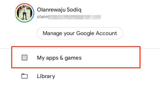 - Launch the Google Play Store, tap the profile picture at the top-right corner and select My apps & games.