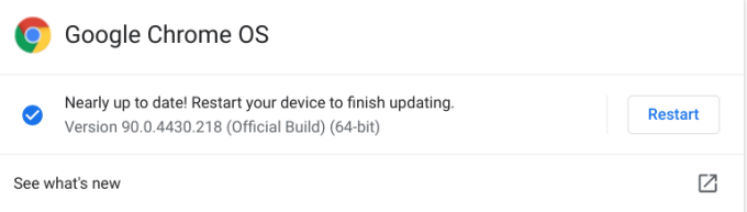 - Install any Chrome OS update that appears on the screen. You’ll get a “Your Chromebook is up to date” message if you’re running the latest Chrome OS build. If there’s a “Restart to Update” or “Restart” button on the page, there’s a pending update that’s been previously downloaded in the background. Tap the button to restart and update your Chromebook.