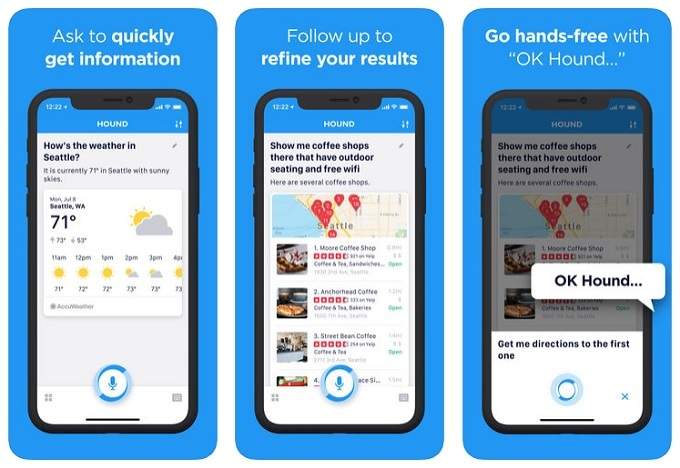 Hound obviously drops the “sound” bit of the name and offers general purpose search, but with the same sense of innovation that SoundHound is known for. The main selling point is their advanced natural language technology. Speed, accuracy and natural speech are the three pillars hound is built on.