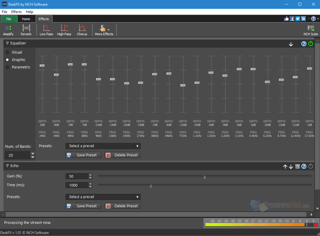 As the name of this app suggests, DeskFX Audio Enhancer strives to enhance your audio experience. However, it doesn’t focus only on the volume, but also on the quality of the sound. It supports various special effects and it has a 20-band equalizer which will allow you to toggle between graphic, parametric, visual, or any other equalizer on the list. This app is only $14.99 but you can also try it out for a 14-day trial period.