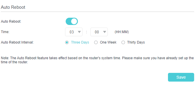 Some routers come with a built-in reboot scheduler. Plus, both Tomato and DD-WRT allow you to set automatic reboots. Schedule a reboot for the middle of the night so your internet connectivity isn’t disrupted during the day.