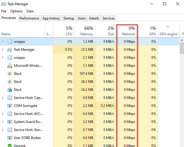 Open the Task Manager and switch to the Processes tab. Check the Network column and look for processes that have been taking up an unexpected volume of bandwidth. Stop those processes and see if the Wi-Fi speed improves.