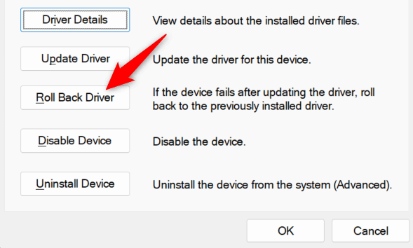 - Select the Roll Back Driver button to uninstall your driver update.