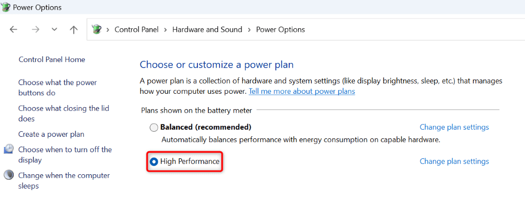 6. Use the High-Performance Power Plan on Your Windows PC