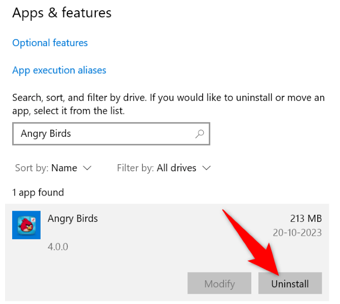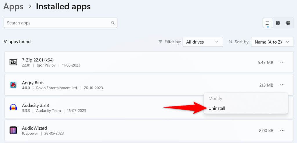 - Find your game on the list, select the three dots next to the game, and choose Uninstall.