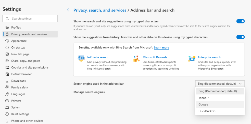 Change the Default Search Engine from Google