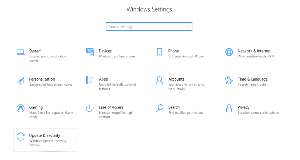 - Select Update & Security.