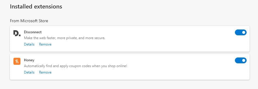 - Disable or remove all extensions by clicking the blue bar or selecting Remove.