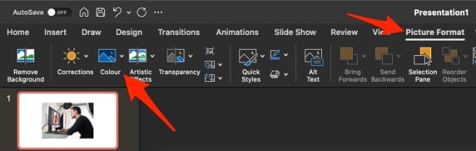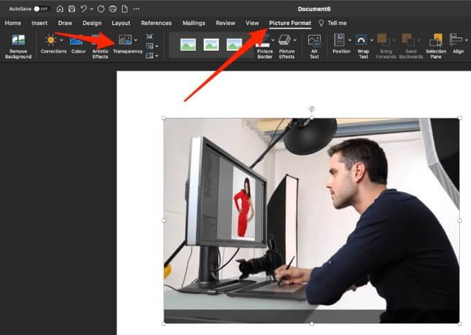 - You can also change the transparency of part of your image, open your image, select it and then select **Picture Format**.