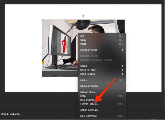 - Right-click your image and select **Format Picture**.