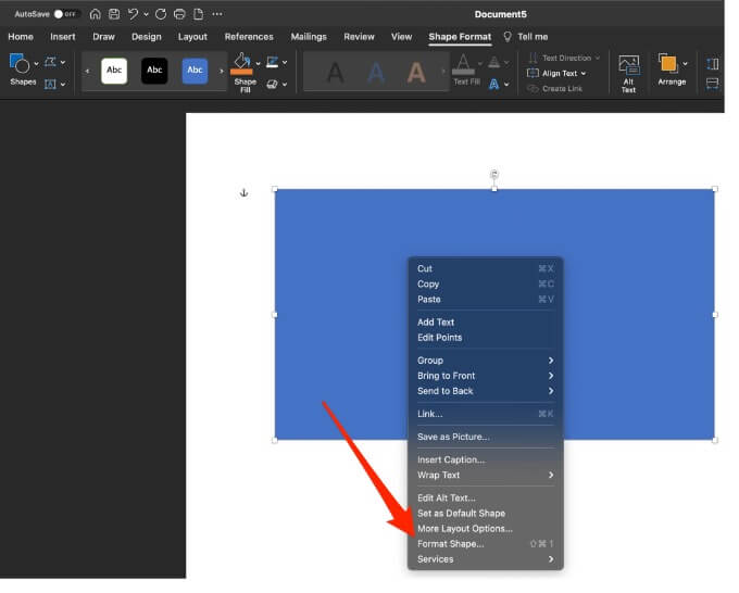 - Right-click the shape and select **Format Shape**.
