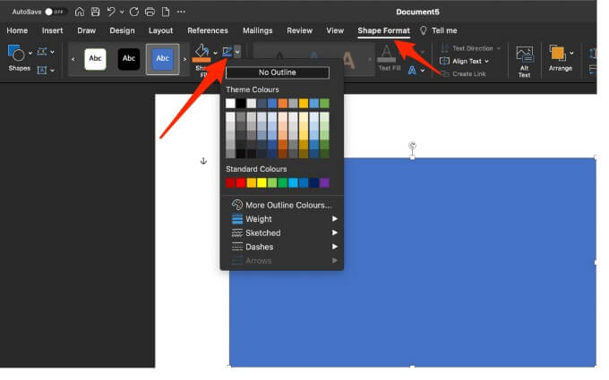 - Next, select the shape and then select **Shape****Format** > **Shape Outline** > **No Outline**.