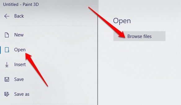 - Next, select **Open** > **Browse files** to open your image.