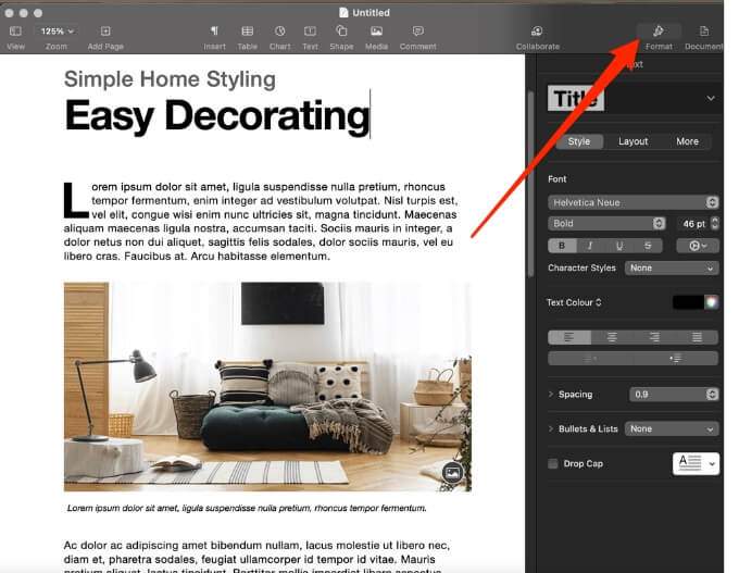 - In Pages, Keynote or Numbers for Mac, open the document containing the image you want to make transparent and then tap the Format icon.