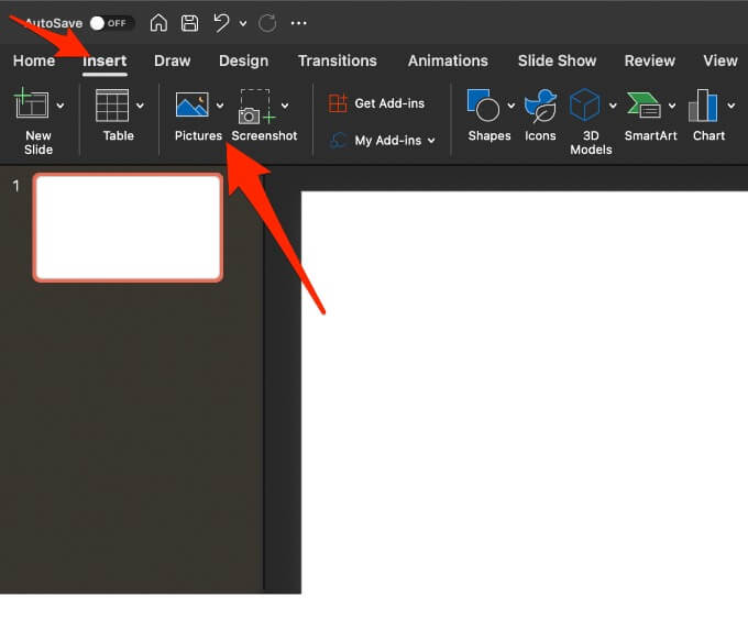 - Open PowerPoint, select Insert > Pictures to insert your image.