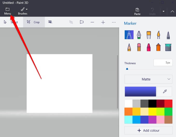 - * Launch Paint 3D and then select Menu.