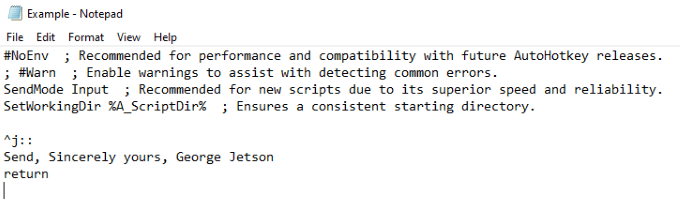Now whenever you type CTRL+j, the phrase “Sincerely yours, George Jetson” will appear.