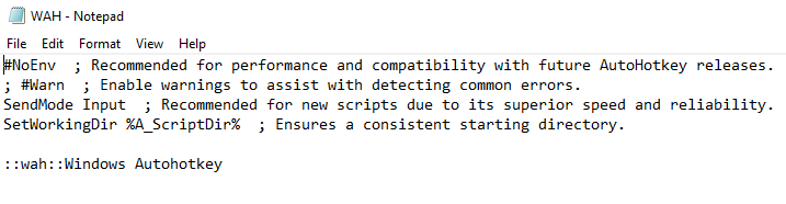 The above command was a hotkey. Now we will show you how to build a hotstring, or a shortcut that types a word or series of words. This is the same process used to type “Windows Autohotkey” without actually typing it.