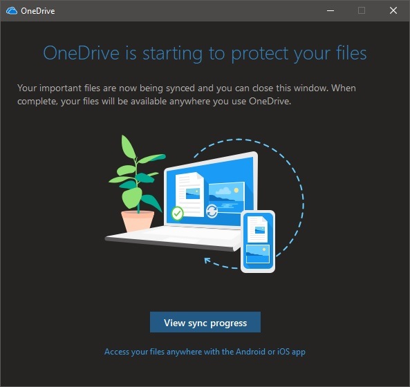 The folder protection setup may take a few minutes. You can choose to view the sync process, but at this point you can close everything. Any new files you add to one of these protected locations will be automatically synced.