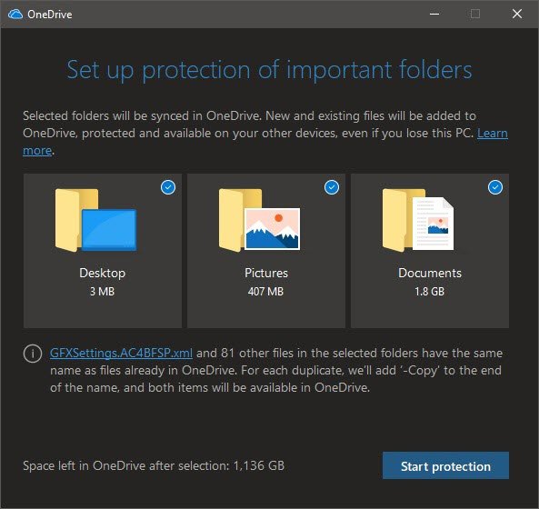 *Note: It’s worth mentioning that performing the steps below will actually move the above-mentioned folders into the OneDrive folder. If you want them to remain in the current locations, then do not follow the steps below. *