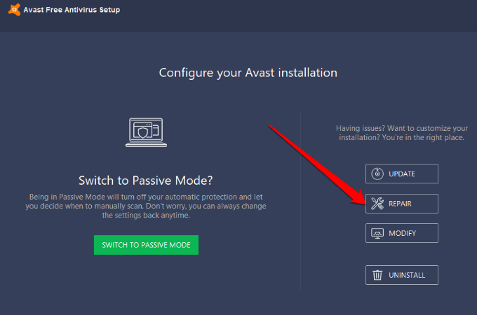 Repairing Avast will fix or replace program files that may be missing, outdated or corrupted, and reset the software configuration.
