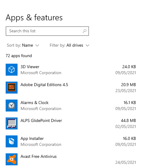 - If Avast doesn’t appear in the Apps & Features list, it’s not installed correctly on your PC, and you’ll have to download and reinstall it.