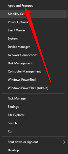 - Close any apps or antivirus programs running on your PC and then right-click Start > Apps & Features.