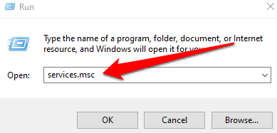 - Type **services.msc** in the Run dialog box and press **Enter**.