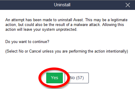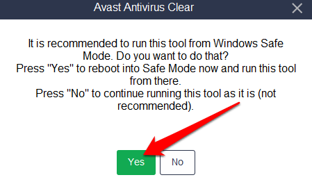 - If prompted by the **Avast Antivirus Clear** dialog to **restart in Safe Mode**, select **Yes**.