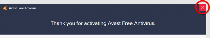 - Select the **X** icon on the new screen to go back to the **My Subscriptions** screen. This activates Avast Free Antivirus for another 12 months.