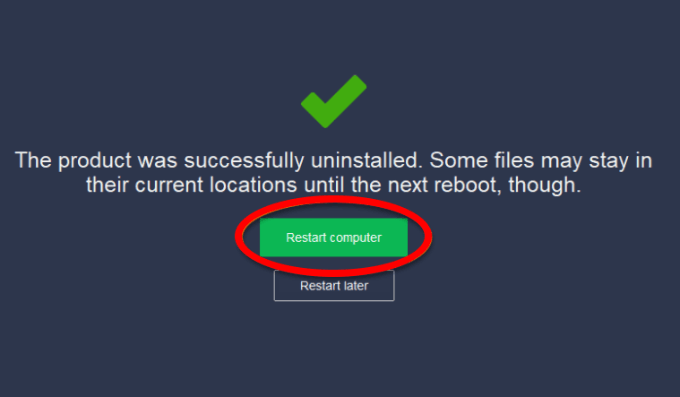 - Once the removal process ends, select **Restart Computer** to complete the uninstallation.